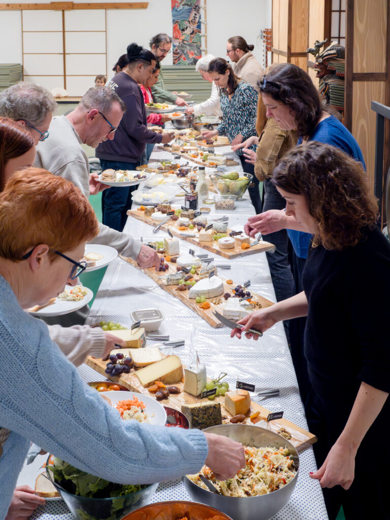 Ce vendredi 20 mars, nous avons organisé notre traditionnel souper fromage, un événement convivial qui permet de récolter des fonds pour continuer à faire exister notre précieux dojo. Et cette année encore, de nombreuses personnes ont répondu présentes à l’appel ! Après une démonstration des adultes et des enfants, qui ont également pu faire découvrir cet art martial à leurs proches (ce n’est pas aussi simple que cela en a l’air 😉), nous avons pu déguster une large sélection de fromages tous plus délicieux les uns que les autres, avant de passer aux desserts concoctés par nos membres. Un joli moment d’échange et de partage, immortalisé par Yanick, notre aïkidoka/photographe.